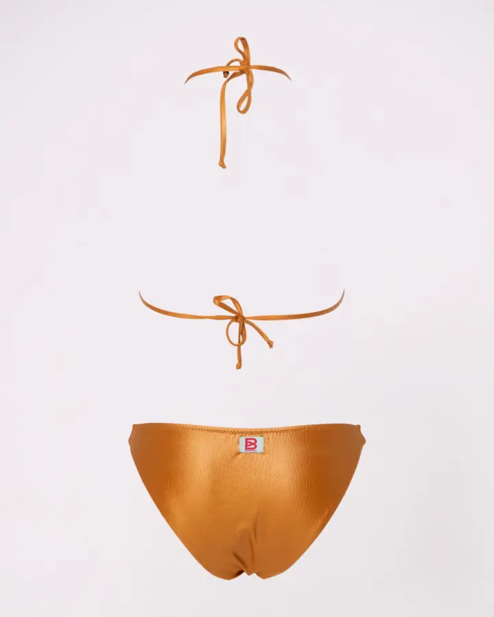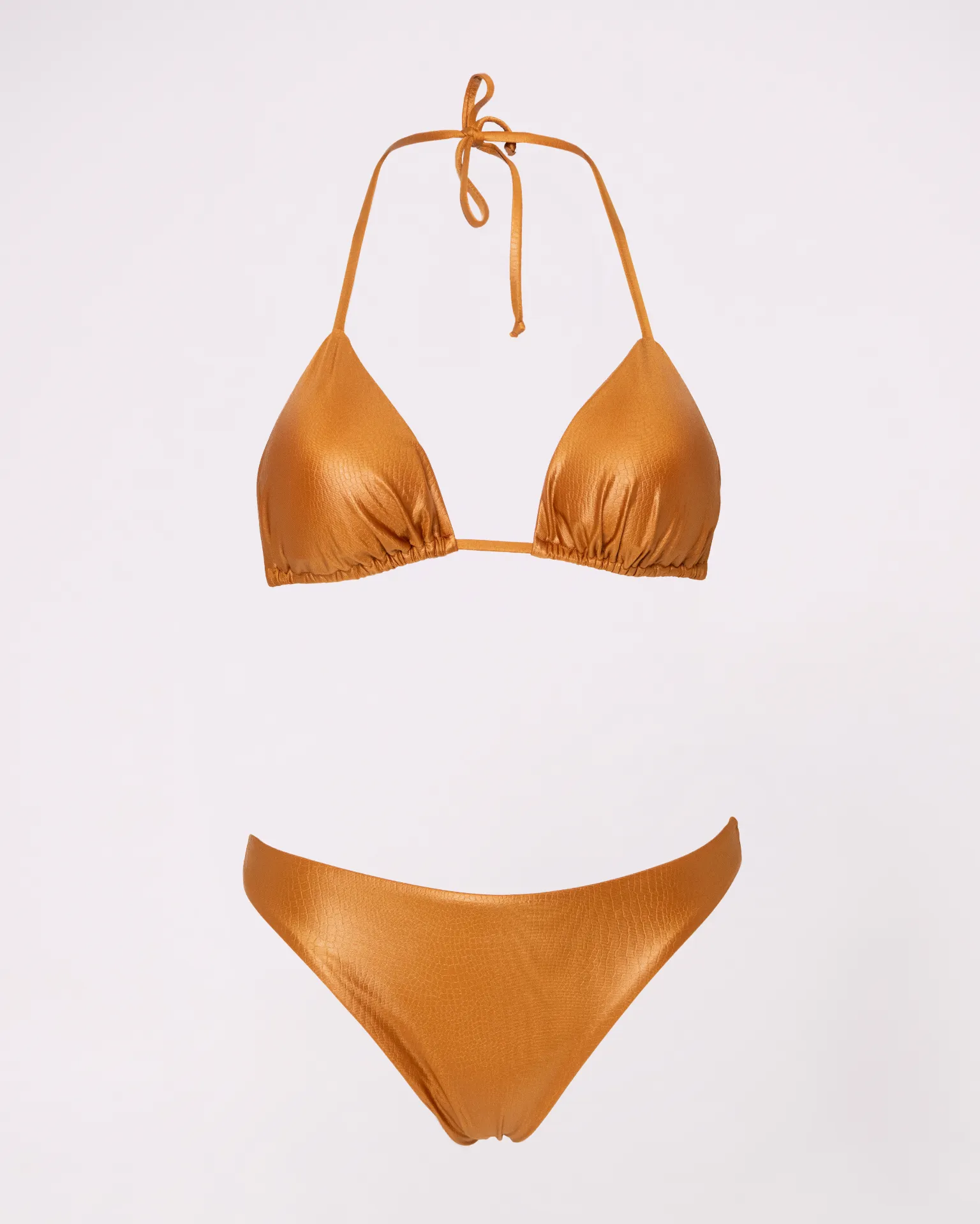Costume da bagno giovanile composto da bikini triangolo e slip normale con fianchi di 3 cm, realizzato in tessuto effetto coccodrillo. Il modello semplice ma originale esalta la figura in modo naturale e armonioso. Perfetto per chi cerca comfort e stile, questo bikini unisce praticità e design unico, ideale per spiaggia, piscina o vacanze estive. Tessuto resistente e dettagli raffinati rendono il look moderno e versatile, per un outfit da mare sempre alla moda. Consigli top: vestibilità regolare scegliere la propria taglia consiglio per bottom: vestibilità regolare scegliere la propria taglia