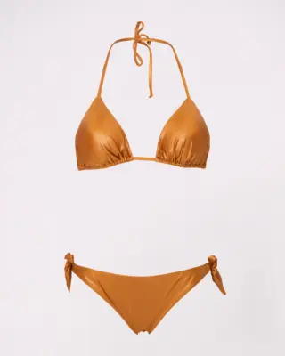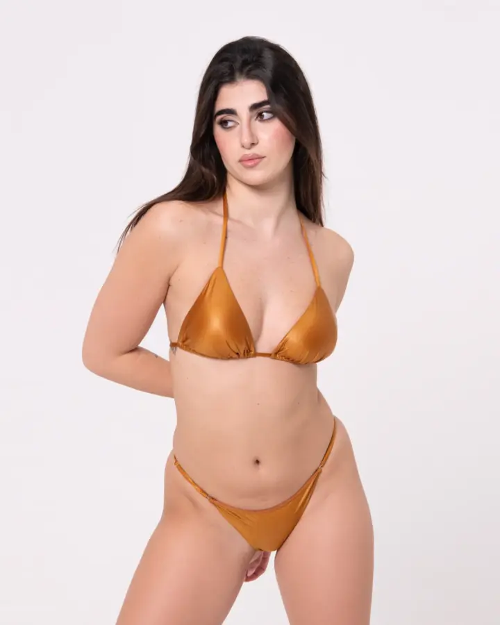 Bikini a triangolo con coppette estraibili e slip brasiliana con regolatori sui fianchi, realizzati in tessuto morbido effetto spugna per un comfort eccezionale. Il triangolo valorizza il décolleté mentre la brasiliana assicura una vestibilità regolabile. Perfetti per chi cerca stile, sostegno e libertà di movimento, unendo eleganza femminile e comodità quotidiana in un unico completo bikini. Consigli top: vestibilità regolare scegliere la propria taglia bottom: vestibilità REGOLARE, scegliere la propria taglia per vestibilità giusta, se si oscilla fra due misure scegliere una tg in più
