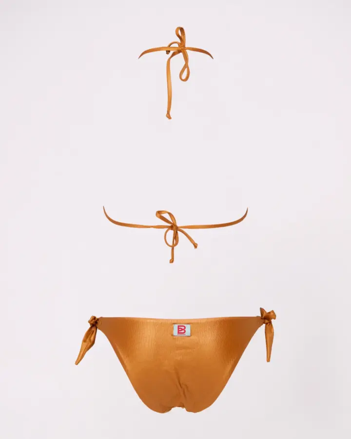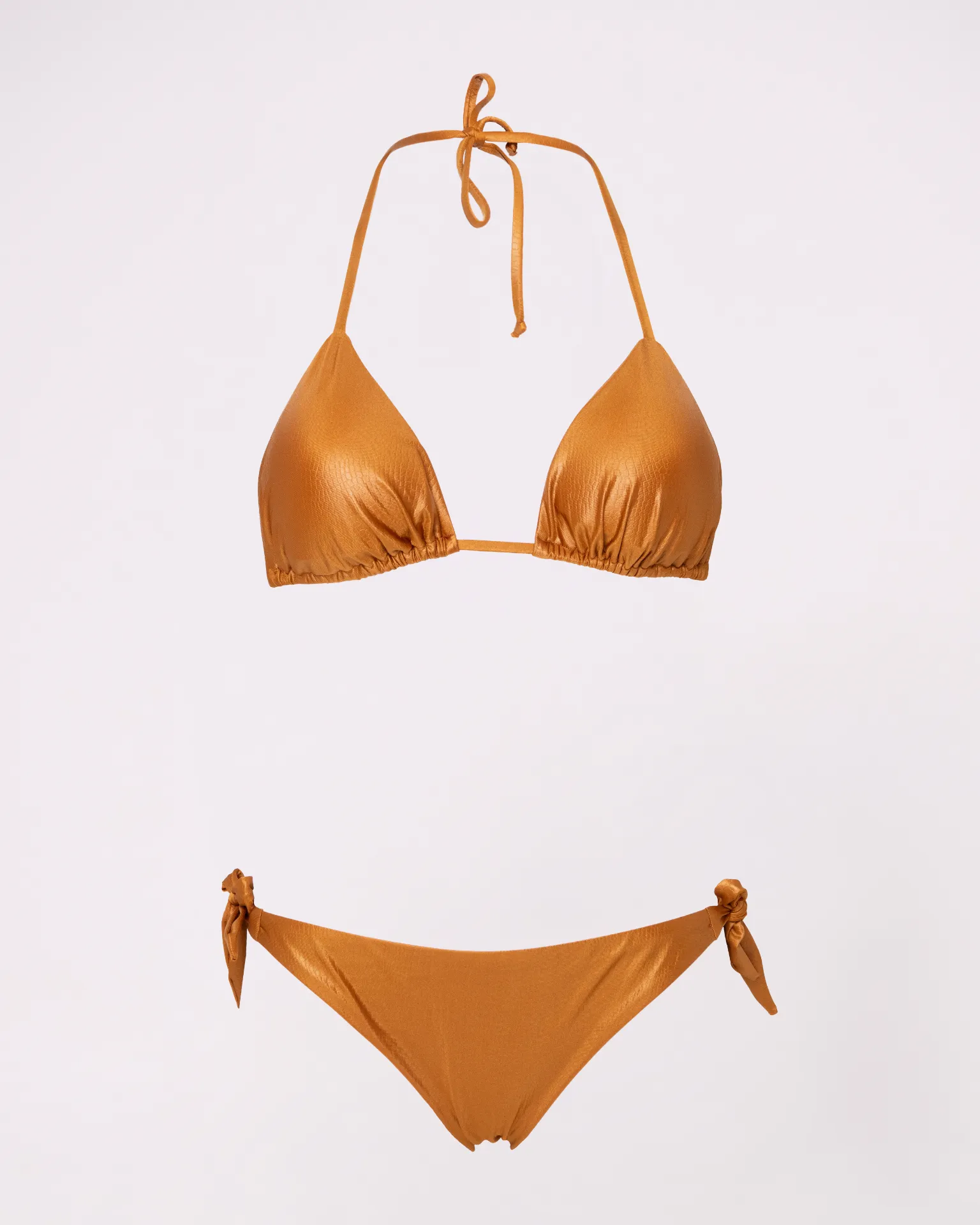 Bikini triangolo con slip a fiocco regolabile sui fianchi in tessuto effetto coccodrillo, senza cuciture visibili e morbido al tatto: non stringe e garantisce comfort totale. Modello giovanile e moderno che esalta la figura in modo naturale, perfetto per spiaggia, piscina o vacanze estive. Design elegante e versatile, unisce stile originale e praticità per un look mare sempre alla moda e fresco. Ideale per chi cerca un bikini trendy e confortevole.. Consigli top: vestibilità regolare scegliere la propria taglia consiglio per bottom: vestibilità regolare scegliere la propria taglia