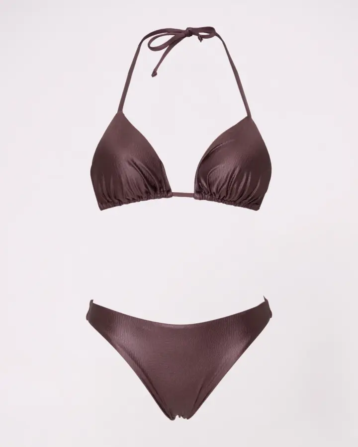 Costume da bagno giovanile composto da bikini triangolo e slip normale con fianchi di 3 cm, realizzato in tessuto effetto coccodrillo. Il modello semplice ma originale esalta la figura in modo naturale e armonioso. Perfetto per chi cerca comfort e stile, questo bikini unisce praticità e design unico, ideale per spiaggia, piscina o vacanze estive. Tessuto resistente e dettagli raffinati rendono il look moderno e versatile, per un outfit da mare sempre alla moda. Consigli top: vestibilità regolare scegliere la propria taglia consiglio per bottom: vestibilità regolare scegliere la propria taglia