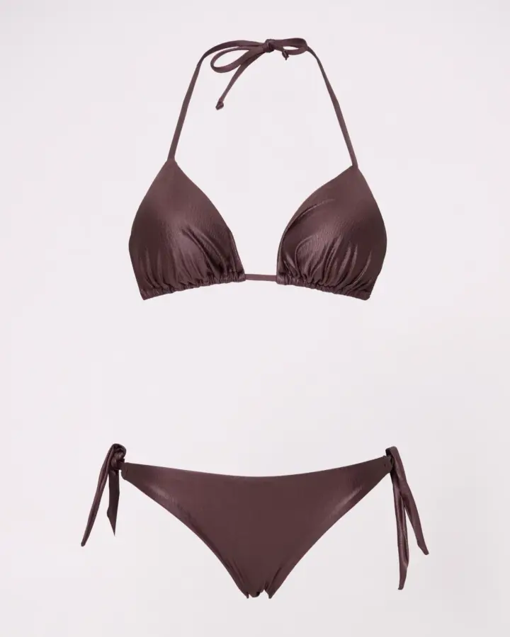 Bikini a triangolo con coppette estraibili e slip brasiliana con regolatori sui fianchi, realizzati in tessuto morbido effetto spugna per un comfort eccezionale. Il triangolo valorizza il décolleté mentre la brasiliana assicura una vestibilità regolabile. Perfetti per chi cerca stile, sostegno e libertà di movimento, unendo eleganza femminile e comodità quotidiana in un unico completo bikini. Consigli top: vestibilità regolare scegliere la propria taglia bottom: vestibilità REGOLARE, scegliere la propria taglia per vestibilità giusta, se si oscilla fra due misure scegliere una tg in più
